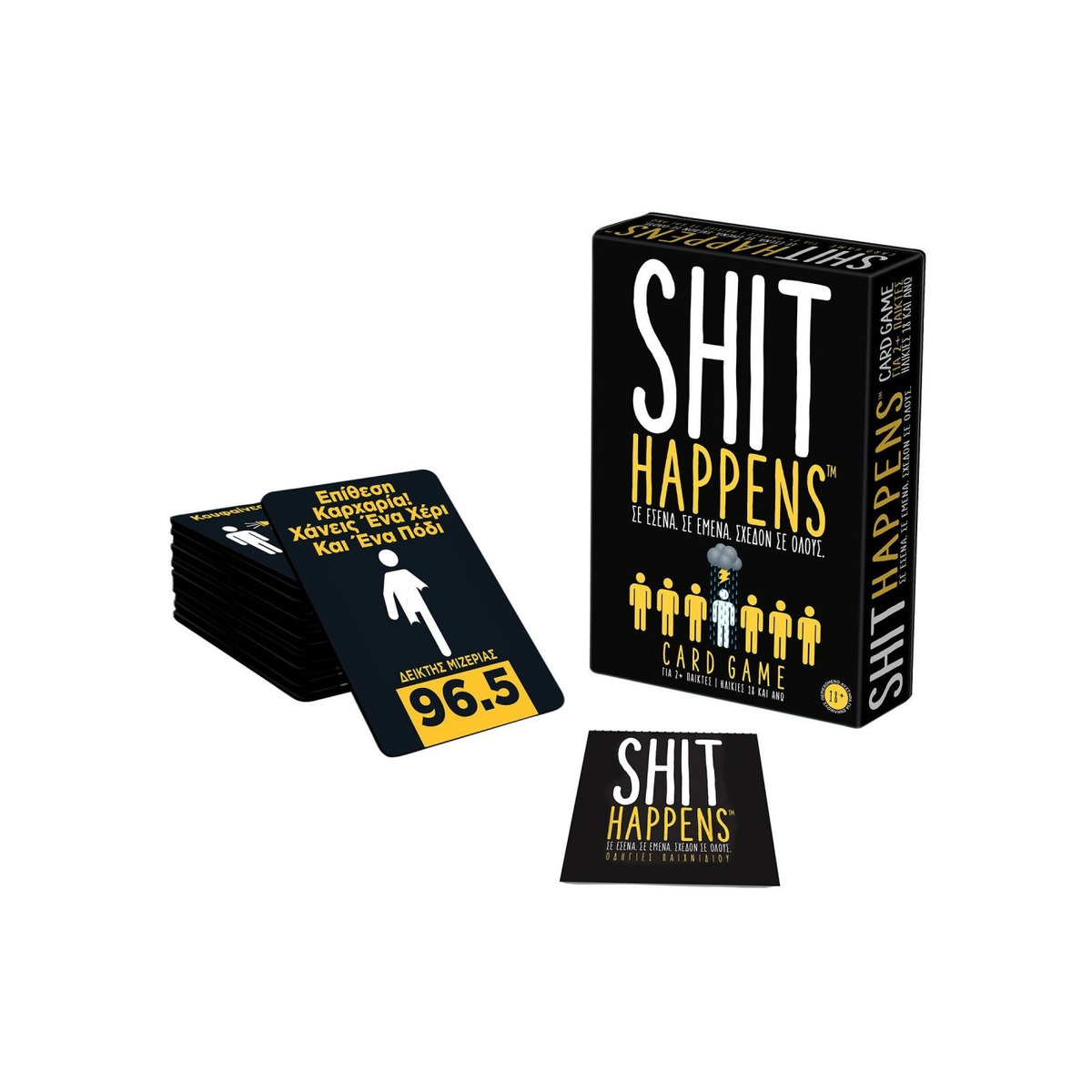 Επιτραπέζιο Shit Happens. Σε όλους μας συμβαίνουν άσχημα γεγονότα…Ταξινόμησέ τα ανάλογα με το πόσο θλιβερά είναι.Κάθε ατυχής κατάσταση βαθμολογείται από το 1 έως το 100, χρησιμοποιώντας τον ΔΕΙΚΤΗ ΜΙΖΕΡΙΑΣ. Οι παίκτες προσπαθούν να ταξινομήσουν αυτές τις καταστάσεις σύμφωνα με αυτό τον δείκτη. Αν έχεις δίκιο, κρατάς την κάρτα!Συγκέντρωσε 10 κάρτες ΣΤΟ ΜΟΝΟΠΑΤΙ ΤΟΥ ΠΟΝΟΥ σου και κέρδισε!Ιδανικό αν θέλετε να κάνετε τους φίλους σας να κλάψουν από τα γέλια!