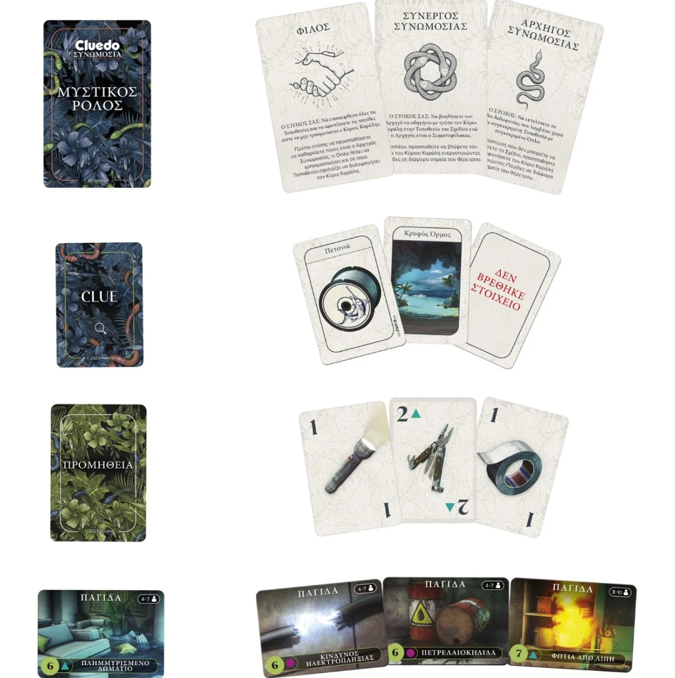 Το παιχνίδι συνωμοσίας Cluedo είναι το νέο παιχνίδι ρόλων και μετατόπισης υποψιών! Ως επισκέπτης στο πολυτελές Black Adder Resort ανακαλύπτεις ότι κάποιος (ίσως και εσύ!) θέλει να δολοφονήσει τον μάνατζέρ του, τον κύριο Κοράλ. Μια σειρά από θανατηφόρες παγίδες έχουν φυτευτεί σε όλο το θέρετρο και κάποιος είναι οπλισμένος! Τώρα πρέπει να λύσετε το απόλυτο μυστήριο ποιον μπορείτε να εμπιστευτείτε. Σε αυτό το παιχνίδι στρατηγικής εξαπάτησης, οι παίκτες παίζουν ως χαρακτήρες Clue do και αναλαμβάνουν μυστικούς ρόλους σε αντίπαλες ομάδες Friends vs the Conspiracy. Οι φίλοι εργάζονται για να σώσουν τον κύριο Κοράλ και να αποκαλύψουν το «Πού, Ποιος και Με Τι» της πλοκής Τα μέλη της Συνωμοσίας προσπαθούν να σαμποτάρουν κρυφά τους Φίλους και να τοποθετήσουν τη δολοφονία του σε μια συγκεκριμένη τοποθεσία και με ένα συγκεκριμένο όπλο Και οι δύο ομάδες θα βρουν επίσης στοιχεία για να μοιραστούν ή όχι! Ποια πλευρά θα τα καταφέρει Αυτό το συναρπαστικό παιχνίδι για 4 10 παίκτες είναι ένα διασκεδαστικό ομαδικό παιχνίδι για ηλικίες 14 Είναι ένα υπέροχο δώρο για τους λάτρεις της εξερεύνησης εγκλήματος, των παιχνιδιών ρόλων και του κλασικού παιχνιδιού Cluedo.