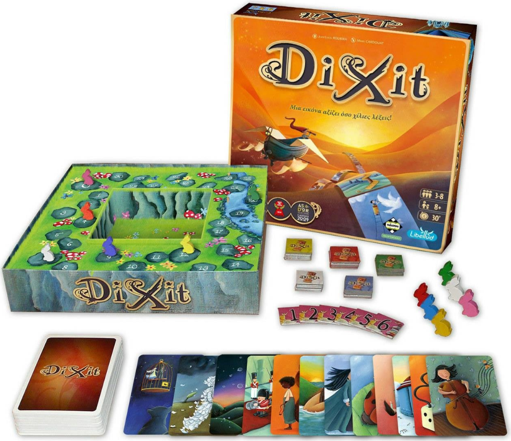 Πέντε εικόνες ανοίγουν. Έχουν όλες κάτι κοινό: μια αινιγματική πρόταση. Μια όμως από τις πέντε ανήκει στον αφηγητή. Οι παίκτες θα πρέπει να επιστρατεύσουν τη διορατικότητα και τη λογική τους για να τη βρούνε, αποφεύγοντας ταυτόχρονα τις παγίδες των συμπαικτών τους. Το Dixit είναι ένα ευχάριστο αλλά και συναρπαστικό παιχνίδι γεμάτο εκπλήξεις για την παρέα αλλά και όλη την οικογένεια.