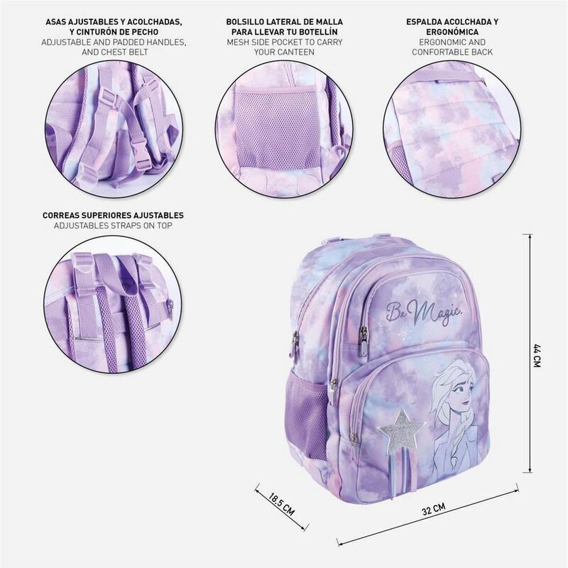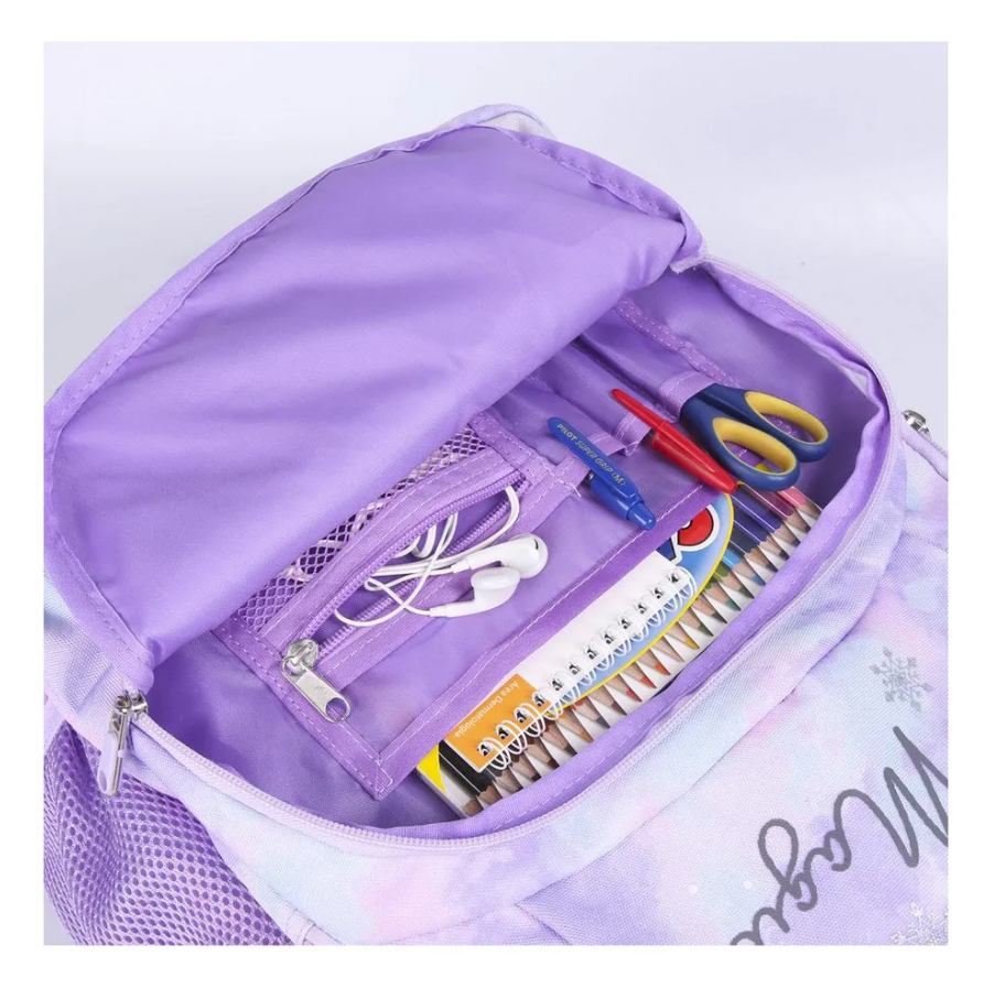 Με αυτό το όμορφο σακίδιο με άνοιγμα στο επάνω μέρος, μπροστινή τσέπη και πλαϊνό πλέγμα για το μπουκάλι νερού, η κόρη σας θα ξεκινήσει μαθήματα με τον πιο ολοκληρωμένο εξοπλισμό και με τη μαγική ψευδαίσθηση της Disney.