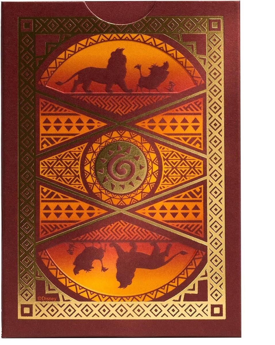 Η συλλεκτική τράπουλα Bicycle Disney The Lion King φέρνει τον μαγικό κόσμο της κλασικής ταινίας της Disney στο τραπέζι του παιχνιδιού. Το deck είναι εμπνευσμένο από τους χαρακτήρες της ταινίας όπως ο Simba, η Nala, ο Mufasa, ο Scar, ο Timon και ο Pumbaa, οι οποίοι εμφανίζονται σε ειδικά σχεδιασμένες φιγούρες στις φιγούρες (court cards).