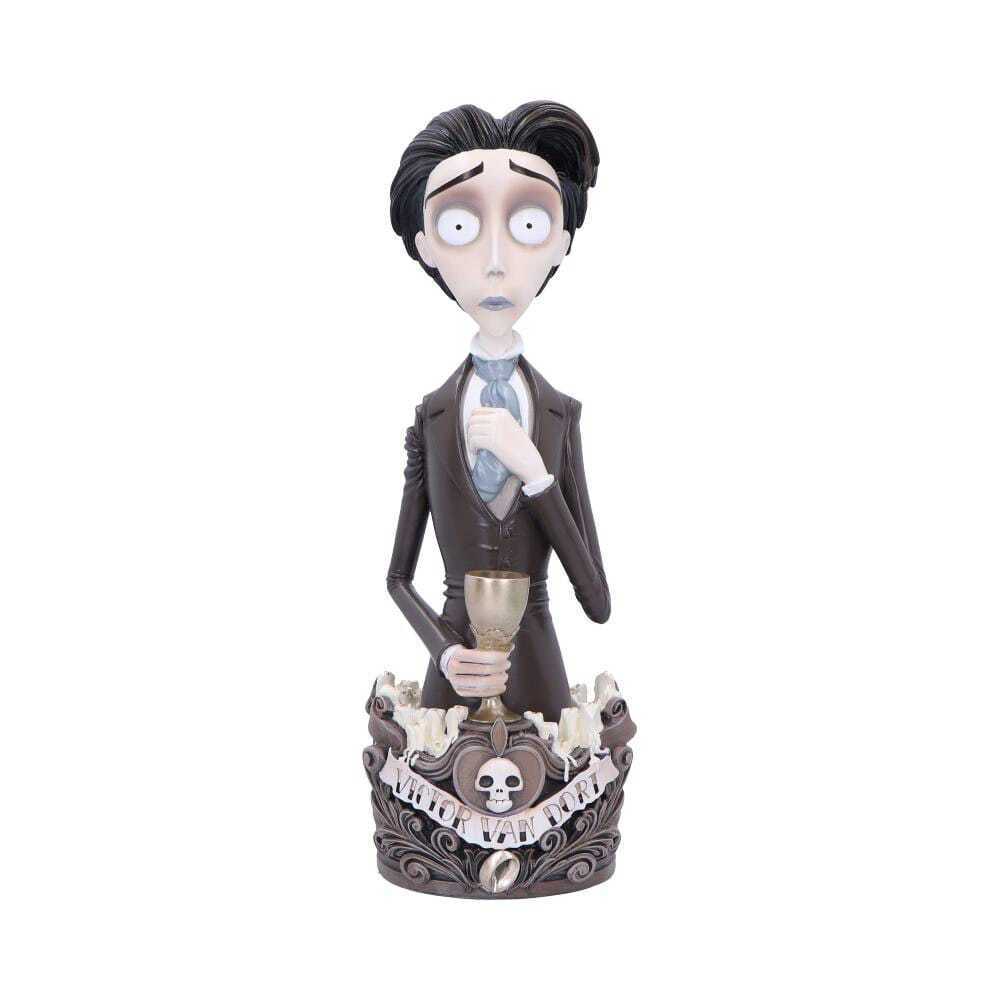 Discover the land of the dead with this Officially Licensed Corpse Bride Victor Bust. Featuring Victor Van Dort, this unwitting groom who finds himself in a mysterious and macabre world. His nervous expression, tousled hair and even the smallest of nuances of his attire have been faithfully recreated in this bust. Cast in the finest resin before being expertly hand-painted, this Corpse Bride Victor Bust is a captivating piece to honour the legacy of Tim Burton's cinematic masterpiece.