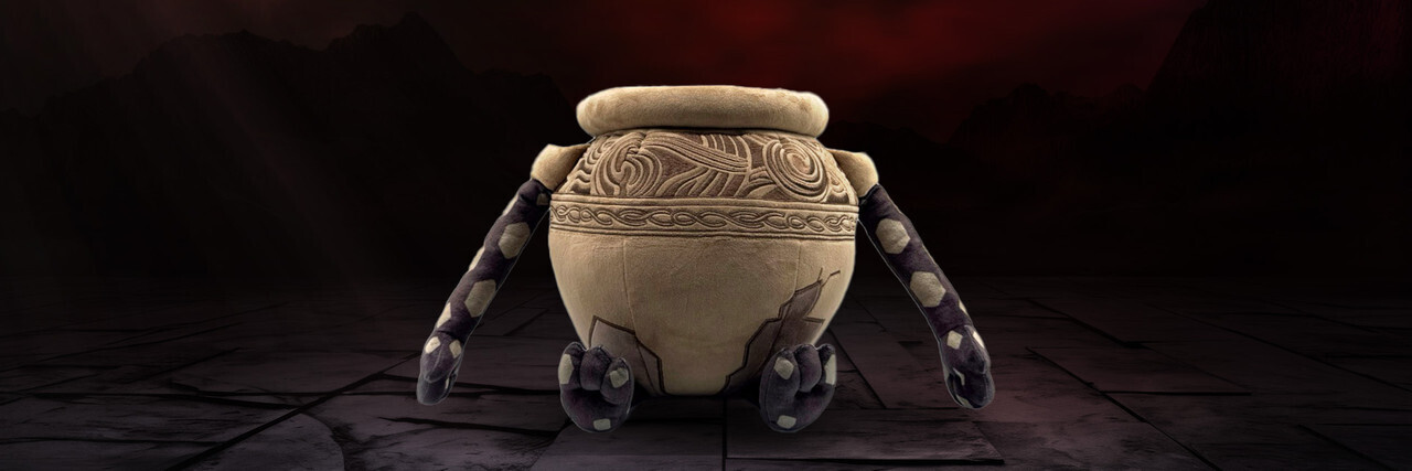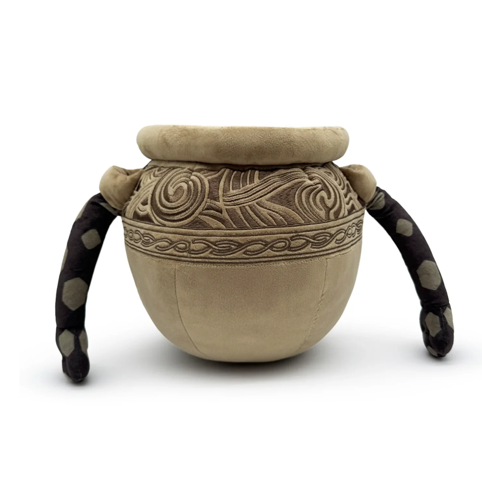 Alexander returns to Youtooz for round two, as he prepares for the most noble duel with his plush debut! Sitting his brown pot body down at 9 inches tall with short legs kicked forward and long arms hanging from either side. Battle-worn cracks run across his body as an ornate pattern wraps around the lip, while an intricately designed red lid seals his innards inside. This plush is packed to the seams with 100% PP cotton and is made of the softest minky material, absolutely perfect for cuddling or participating in the festival with!