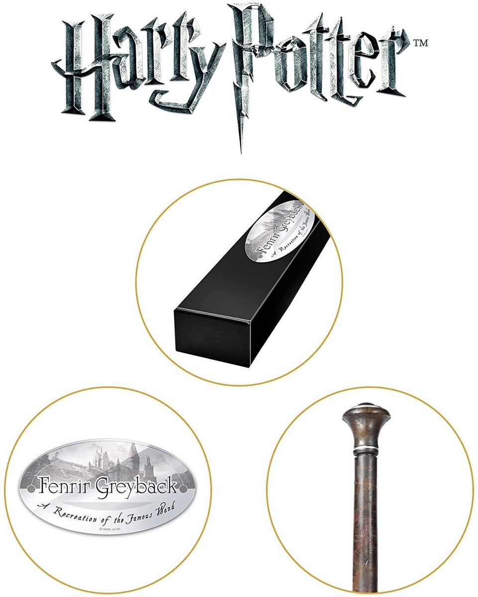 The wand of Death Eater and werewolf Fenrir Greyback. Character box contains name clip. Wand measures approx 35cm.