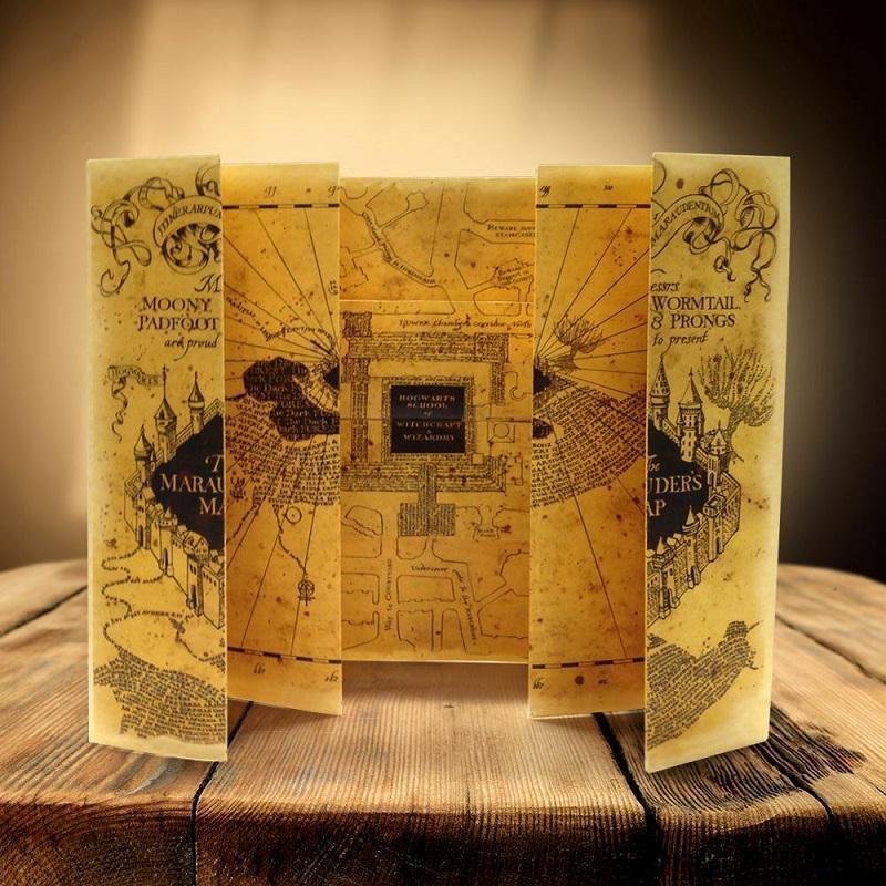 A detailed full size Marauder´s Map replica printed on parchment look-alike paper. Measures 39 x 184 cm open, folds to 39 x 21 cm.