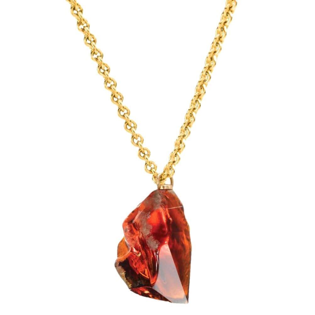 This cut glass pendant in the shape of the Philosopher's Stone comes with gold plated chain.