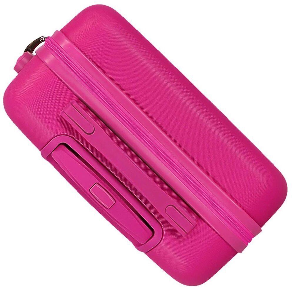Size: 38x55x20cm. Cabin suitcase. It has a capacity of 34L and weighs 2,6 kg. Made of ABS, a resistant and light material. Practical interior with two compartments, on one side a zippered pocket and on the other side rubber bands. Four multi-directional swivel wheels for easy transport. Side combination lock to travel safely and protect your personal belongings.