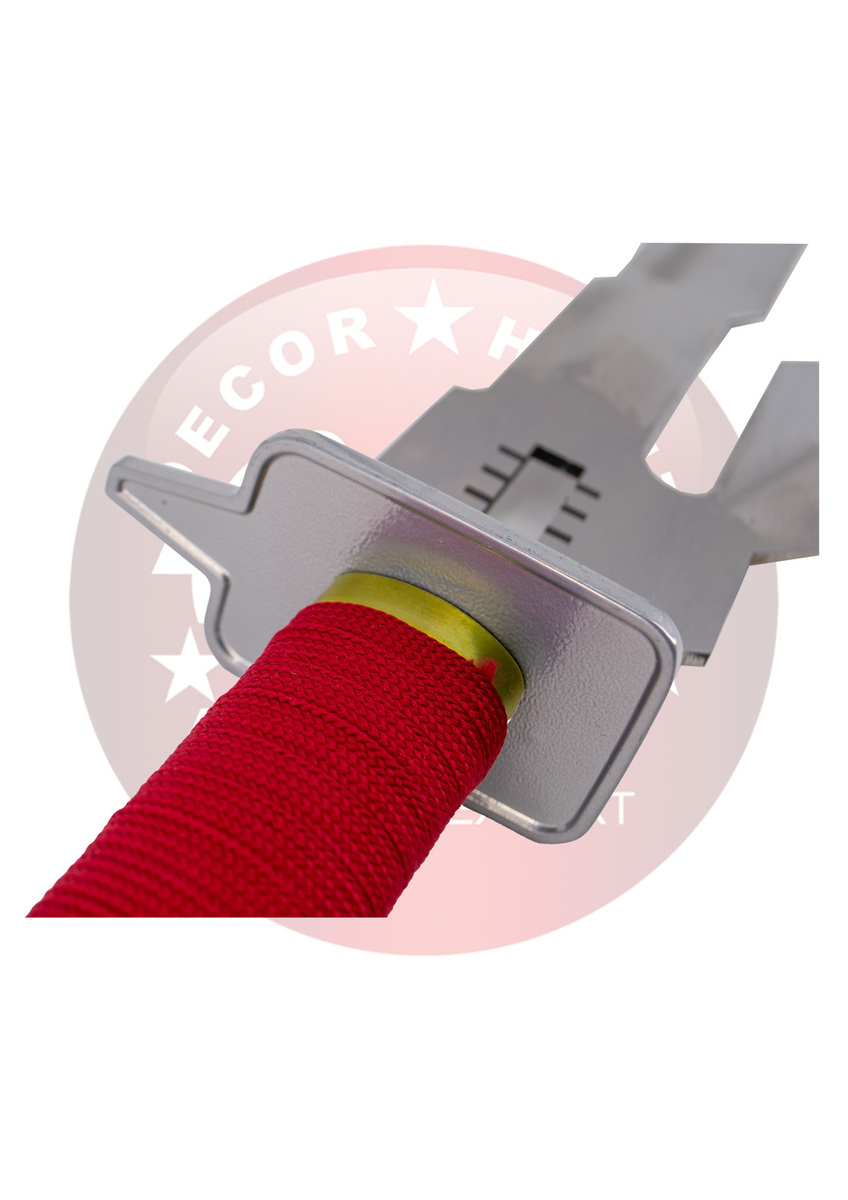 With a red-wound handle that evokes the essence of the series, this spear is not only perfect for complementing your cosplay, but also a standout collectible that will add a distinctive touch to your space. The steel blade, with a satin finish, reflects the quality and attention to detail, making it a visually appealing piece.