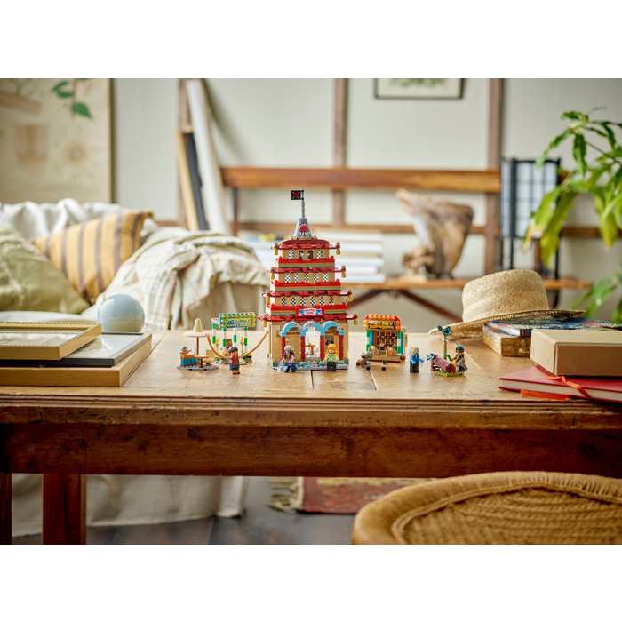 Recreating the epic showdown between the Straw Hat Pirates and the Arlong Pirates, this high-quality LEGO ONE PIECE set makes a great anime gift for boys and girls aged 9 and over. The building set comes with minifigures of Luffy - who comes with arm-lengthening pieces - Nami, Usopp, Arlong and Chu. Kids can collapse the pagoda model during battle by tapping it firmly on top, and the shooting gallery has fun targets for kids to aim at with stud-shooters. Villainous Arlong can be placed on a throne inside the shark attack building. Chu can get a drink at the shack, and the forest contains an iconic ketchup bottle. This playset also contains stud-shooters and accessories, including 3 'Wanted' posters.