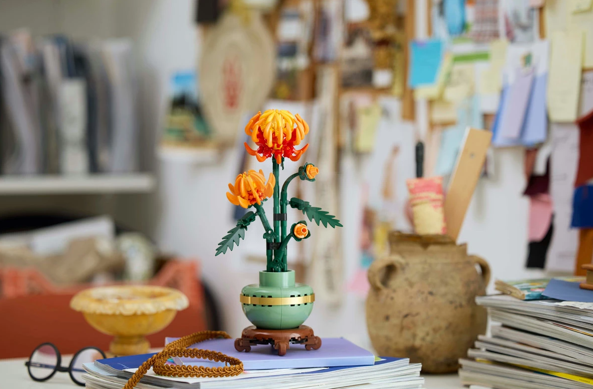 - Buildable LEGO chrysanthemum flower decor - Take quality time out for a mindful project with the LEGO Icons Chrysanthemum building set for adults
