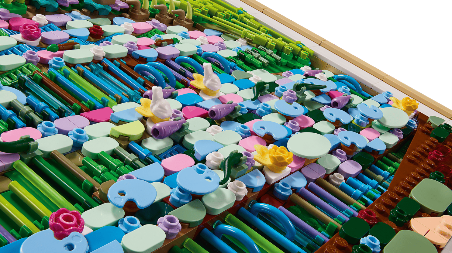 Δημιουργημένο σε συνεργασία με το Metropolitan Museum of Art της Νέας Υόρκης, το οποίο φιλοξενεί πάνω από 1,5 εκατομμύριο έργα τέχνης, συμπεριλαμβανομένου του διάσημου αυθεντικού πίνακα του Claude Monet από το 1899, αυτό το διακοσμητικό LEGO αποτίει φόρο τιμής στις πλούσιες υφές και την ομορφιά του ιμπρεσιονιστικού του στυλ. Μια τολμηρή επανερμηνεία του αριστουργήματός του, χρησιμοποιεί δημιουργικά στοιχεία LEGO για να απεικονίσει τα δέντρα, τη γέφυρα και τα νούφαρα που ζωγράφισε στον κήπο του στο Giverny, τον οποίο φρόντιζε με αγάπη σε όλη του τη ζωή. Το εντυπωσιακό και ιδιαίτερα λεπτομερές σετ έργου τέχνης Monet διαθέτει μηχανισμό ανάρτησης στο πίσω μέρος.