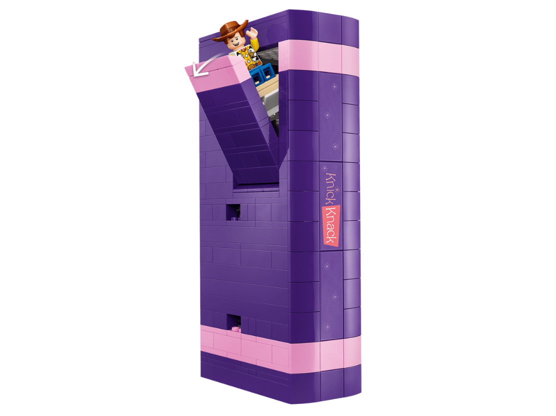 Τα βιβλία του σετ, βασισμένα στις ταινίες Toy Story, περιέχουν κρυφές αναφορές: το μικρό βιβλίο έχει μια λειτουργία που αποκαλύπτει έναν χαρακτήρα Slinky Dog LEGO Disney και Pixar. Το μεγάλο βιβλίο διαθέτει δύο λειτουργίες: γύρισε το κουμπί για να εμφανιστεί μια μινιφιγούρα του Woody ή αφαίρεσε μέρος του εξωφύλλου για να δεις το εσωτερικό και να ανακαλύψεις ακόμη περισσότερες εκπλήξεις. Μόλις ολοκληρωθεί, το σετ αποτελεί μια διασκεδαστική διακόσμηση για το σπίτι ή ένα μοναδικό διακοσμητικό Disney για το γραφείο.
