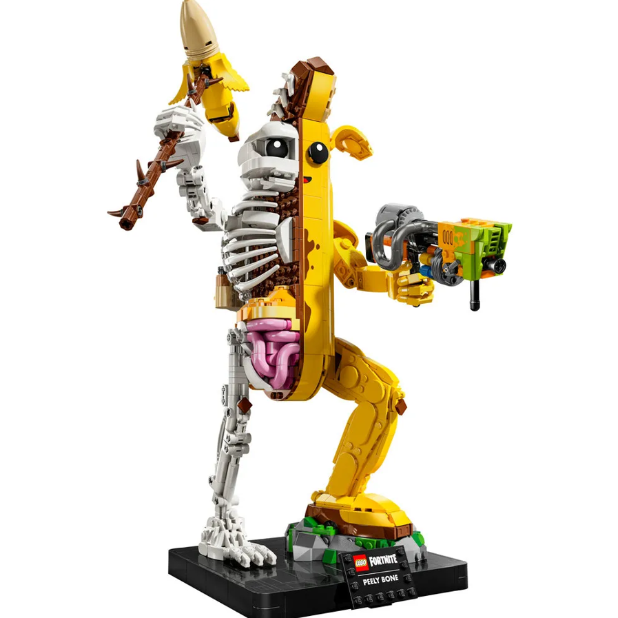 Fortnite fans will immerse themselves in an off-screen adventure as they assemble the brick-built iteration of Peely Bone, who's half-banana and half-skeleton. They'll delight in discovering the gaming toy's moving arms and wrists, as well as its cool accessories, which include a Peely Pick Pickaxe, paint launcher and Banana Bag Back Bling.