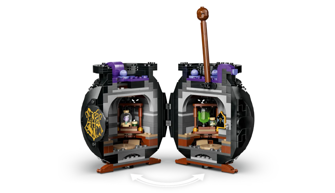 LEGO Harry Potter Cauldron: Secret Potions Classroom (76464). Χαρίστε στα παιδιά ένα μαγευτικό σετ κατασκευής LEGO® Harry Potter™ (76464) για διακόσμηση και παιχνίδι: ένα μαγικό καζάνι με μια μυστική αίθουσα διδασκαλίας φίλτρων στο εσωτερικό. Μετακινήστε το ραβδί ανακατέματος και αποκαλύψτε τη λεπτομερή αίθουσα διδασκαλίας με αφαιρούμενα τραπέζια, μπουκάλια φίλτρο και συστατικά από LEGO τουβλάκια για διάφορα φίλτρα. Αναδημιουργήστε ένα μάθημα φίλτρων του Hogwarts με τις μίνι φιγούρες του Καθηγητή Snape και της Hermione Granger. Και αναζητήστε Hermione's Otter Patronus, τμήμα μιας συλλογής με Προστάτες για την 25η επέτειο των LEGO Harry Potter (σε σετ που πωλούνται χωριστά) και 1 από 14 συλλεκτικά πορτρέτα του Hogwarts. Το κατασκευασμένο από τουβλάκια καζάνι που κοχλάζει είναι απίθανο διακοσμητικό Harry Potter όταν τα παιδιά δεν παίζουν μαζί του, καθώς επίσης και εντυπωσιακό διακοσμητικό για το Halloween. Χαρίστε αυτό το πολύπλευρο σετ μοντέλου ως δημιουργικό δώρο σε κορίτσια, αγόρια και κάθε φαν του Harry Potter ηλικίας 10 ετών και άνω. Και κατασκευάστε με αυτοπεποίθηση χρησιμοποιώντας την εφαρμογή LEGO Builder - ζουμάρετε και περιστρέψτε 3D και παρακολουθήστε την πρόοδο με απλές ψηφιακές οδηγίες.