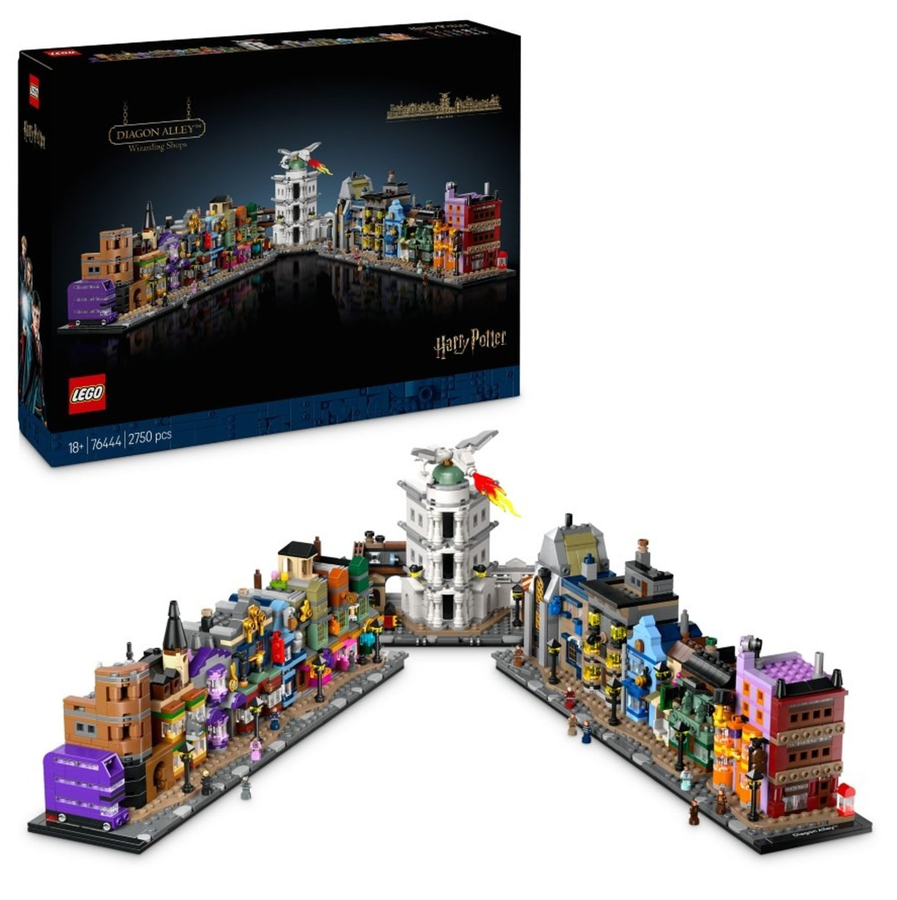 Escape to a magical world with this intricately detailed, microscale LEGO Harry Potter display model of the Diagon Alley wizarding shops (76444). This collictible LEGO Harry Potter building set for adults invites fans to recreate iconic Diagon Alley stores, including Weasley's Wizard Wheezes, Florean Fortescue's Ice Cream Parlour, Ollivanders, Mr. Mulpepper's Apothecary, plus Gringotts Wizarding Bank, the Leaky Cauldron and The Daily Prophet HQ. Each building has instantly recognisable exterior details and contains delightful Easter eggs inside.