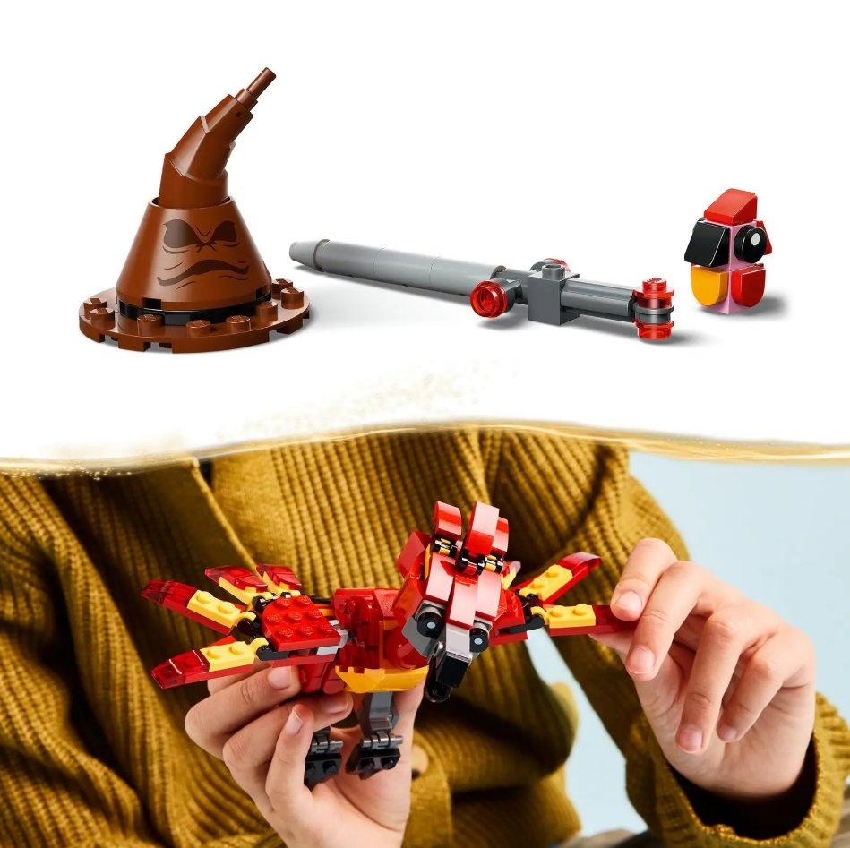 Let animal-loving young Harry Potter fans build their passion for the wizarding world with the LEGO Harry Potter Fawkes: Dumbledore's Phoenix toy building set (76448). The highly posable Fawkes figure has gripping talons to grab onto his perch or the brick-built Sorting Hat and Sword of Gryffindor.