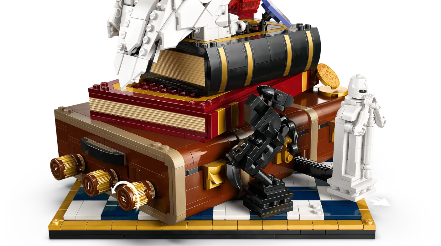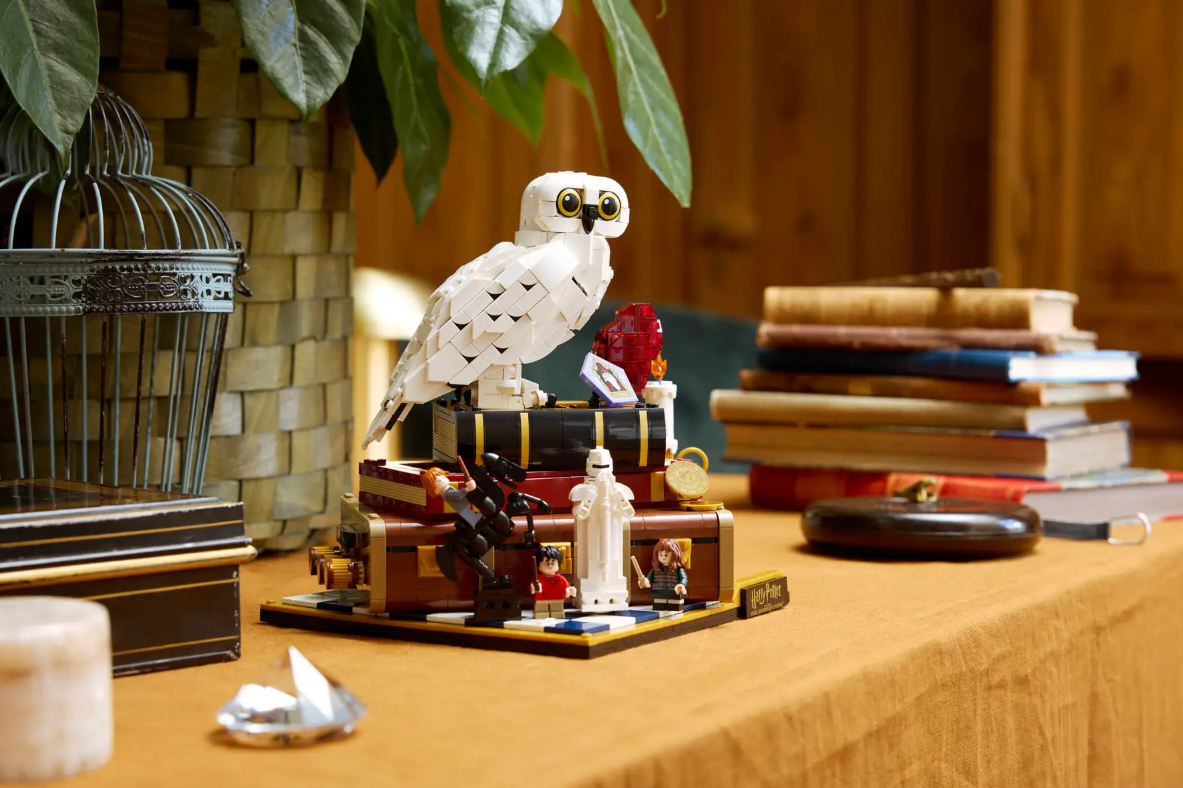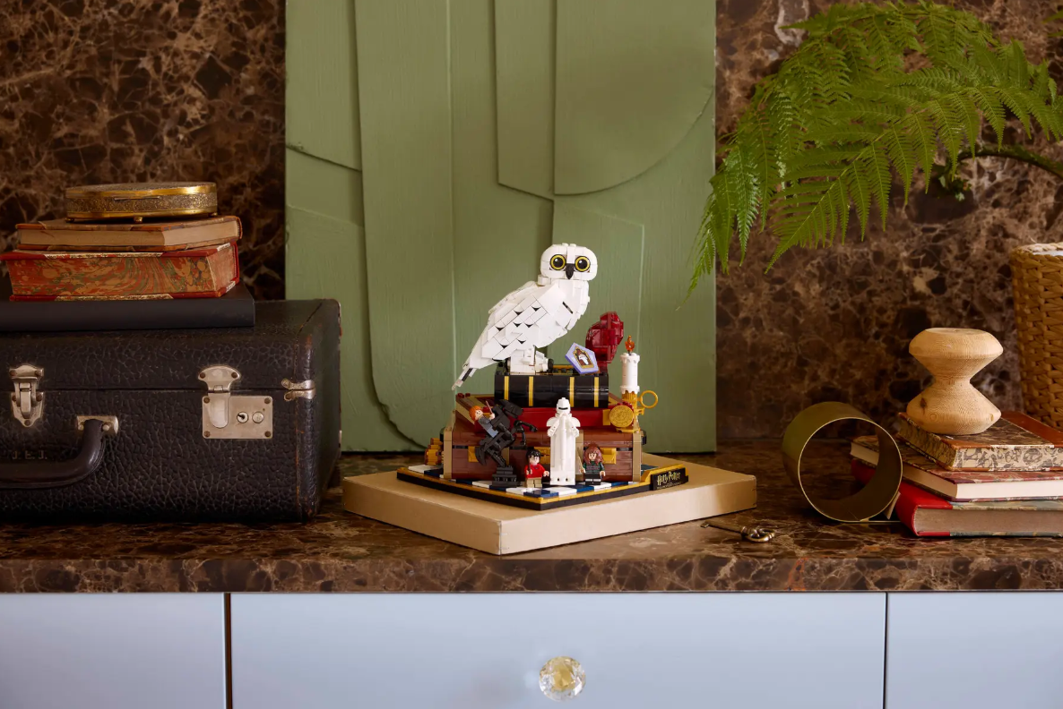 LEGO Harry Potter Sorcerer's Stone-Collector's Edition (76466). Αποτελεί ένα κορυφαίο δημιουργικό δώρο για ενήλικες φαν του Harry Potter, αυτό το συλλεκτικό σετ κατασκευής καθώς διαθέτει διασκεδαστικές λειτουργίες, εμβληματικούς χαρακτήρες και αντικείμενα, και μίνι εκδόσεις κλασικών σκηνών που ξυπνούν μαγικές αναμνήσεις. Δημιουργήστε την πρώτη LEGO φιγούρα της ολόλευκης κουκουβάγιας Hedwig με κλειστά φτερά και τοποθετήστε την δίπλα στη Φιλοσοφική Λίθο πάνω στο μπαούλο του Harry Potter. Προσθέστε 3 LEGO Harry Potter μίνι φιγούρες - Harry Potter, Hermione Granger και Ron Weasley - και αντικείμενα όπως κάρτα Σοκολατένιου Βάτραχου και Μαγικό Σκάκι. Γυρίστε τα 3 κουμπιά για να γυρίσετε το κεφάλι του Hedwig, να μετακινήσετε τη Βασίλισσα πάνω στο Μαγικό Σκάκι και να ανατινάξετε το πλάι του μπαούλου του Harry για να αποκαλύψετε τη σκηνή επίθεσης του ορεινού καλικάντζαρου στο μπάνιο. Οι άλλες μίνι σκηνές απεικονίζουν το Hogwarts Express και τις 5 δοκιμασίες που αντιμετωπίζει ο Harry για να φτάσει στη Φιλοσοφική Λίθο