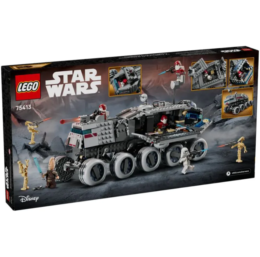 Τα παιδιά μπορούν να ηγηθούν των δικών τους συναρπαστικών αποστολών από το Star Wars: The Clone Wars με το κατασκευάσιμο όχημα Republic Juggernaut (75413). Ένα εντυπωσιακό δώρο LEGO Star Wars για αγόρια, κορίτσια και φαν ηλικίας 9 ετών και άνω, αυτό το όχημα με 10 τροχούς μπορεί να στρίβει γέρνοντας το μοντέλο καθώς το κινείς, ενώ διαθέτει εύκολη πρόσβαση στο λεπτομερές εσωτερικό του.