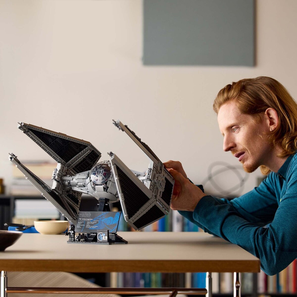 The iconic TIE Interceptor starfighter was part of the first-ever launch of LEGO Star Wars UCS sets in the year 2000; now it's back and redesigned for even greater authenticity. Revel in buildable details, such as its distinctive wings, cockpit interior, laser cannons and rear engine. This collectible brick-built vehicle measures over 40 cm (16 in.) long and has a display stand with an information plaque, a LEGO Star Wars 25th anniversary brick and space for the included TIE Pilot LEGO minifigure and LEGO mouse droid figure.