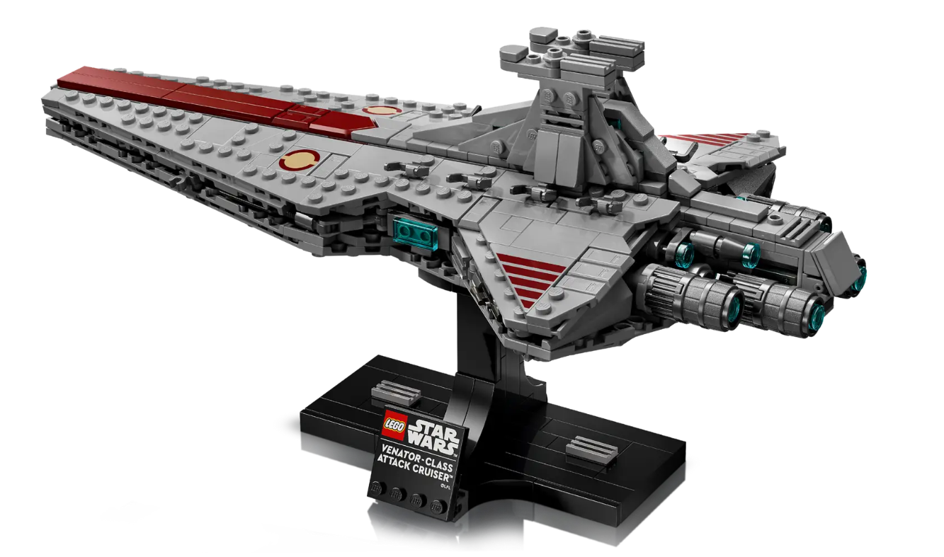 LEGO Star Wars Venator-Class Attack Cruiser (75441). Αποτυπώστε τον αεροδυναμικό σχεδιασμό ενός καταδρομικού Venator με αυτό το σετ κατασκευής μοντέλου αστρόπλοιου (75441). Χρησιμοποιήστε LEGO® τουβλάκια για να αναδημιουργήσετε τις αυθεντικές λεπτομέρειες ενός από τα πιο ευέλικτα αστρόπλοια του στόλου της Γαλαξιακής Δημοκρατίας. Ξαναζήστε σκηνές από το Star Wars: Revenge of the Sith καθώς βυθίζεστε σε αυτήν τη σύνθετη και απολαυστική κατασκευή. Επιδείξτε το εντυπωσιακό καταδρομικό σας πάνω στην κατασκευάσιμη βάση με μια πινακίδα ονόματος. Αυτό το σετ είναι τμήμα της μεσαίου μεγέθους συλλογής αστρόπλοιων LEGO Star Wars™ Starship Collection και ένα υπέροχο δώρο για εσάς ή άλλους ενήλικες φαν της τριλογίας των πρίκουελ. Απολαύστε βελτιωμένες κατασκευές με την εφαρμογή LEGO Builder, ζουμάροντας και περιστρέφοντας με 3D οδηγίες ενώ αποθηκεύετε και παρακολουθείτε την πρόοδο - όλα από την εφαρμογή.