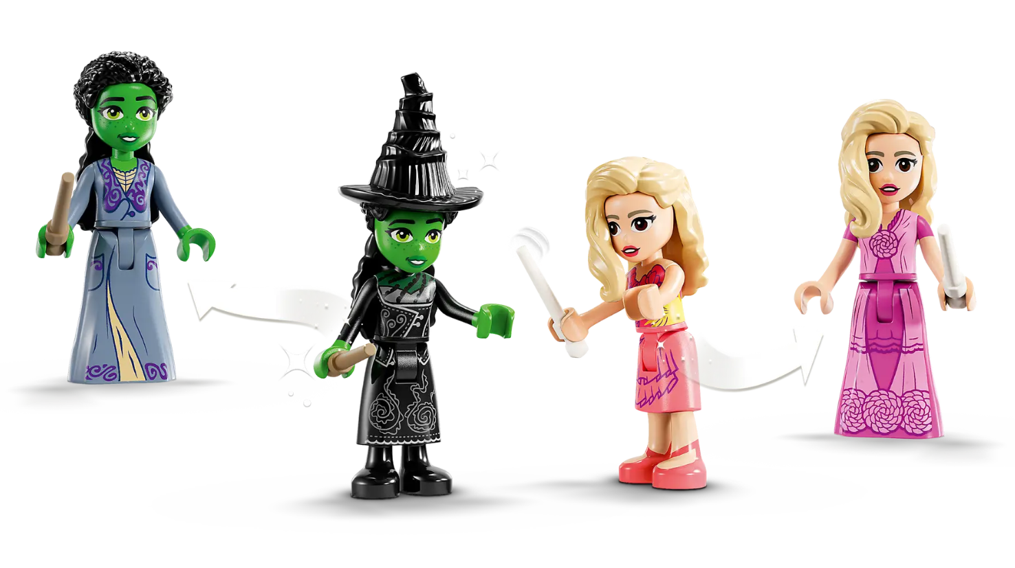 - Elphaba and Glinda mini-dolls figures - This fantasy toy includes the 2 Wicked lead characters dressed in pajamas, just like in the scene from the movie, as well as 2 daytime outfits for dress-up fun