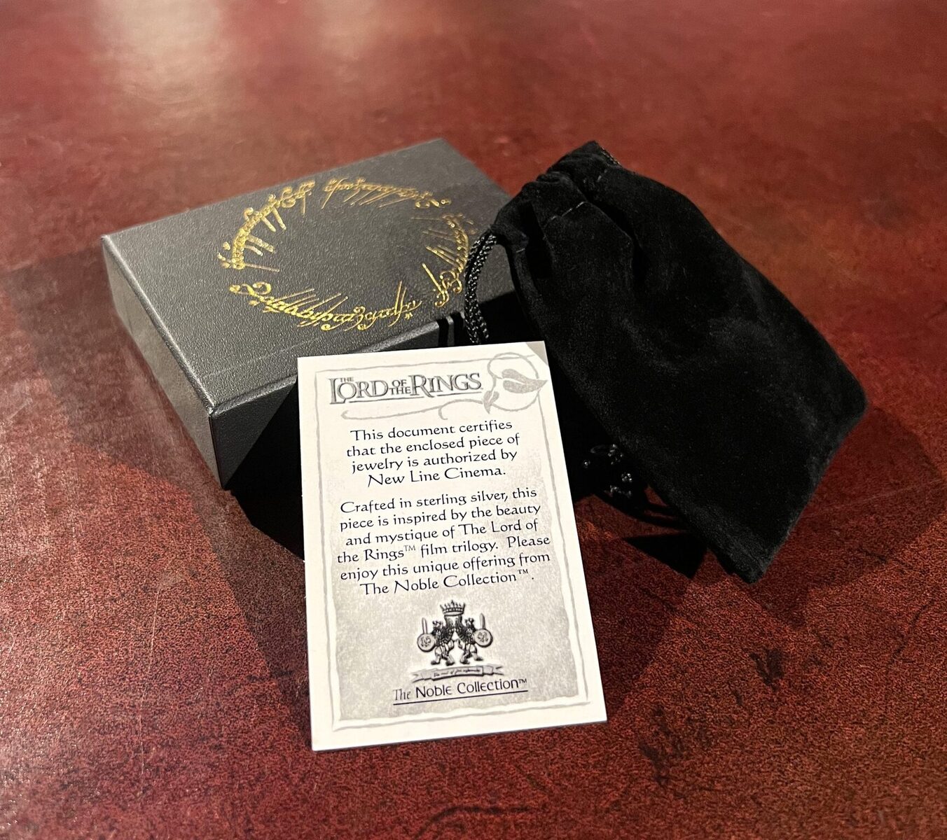 Comes in a Lord of the Rings gift box.
