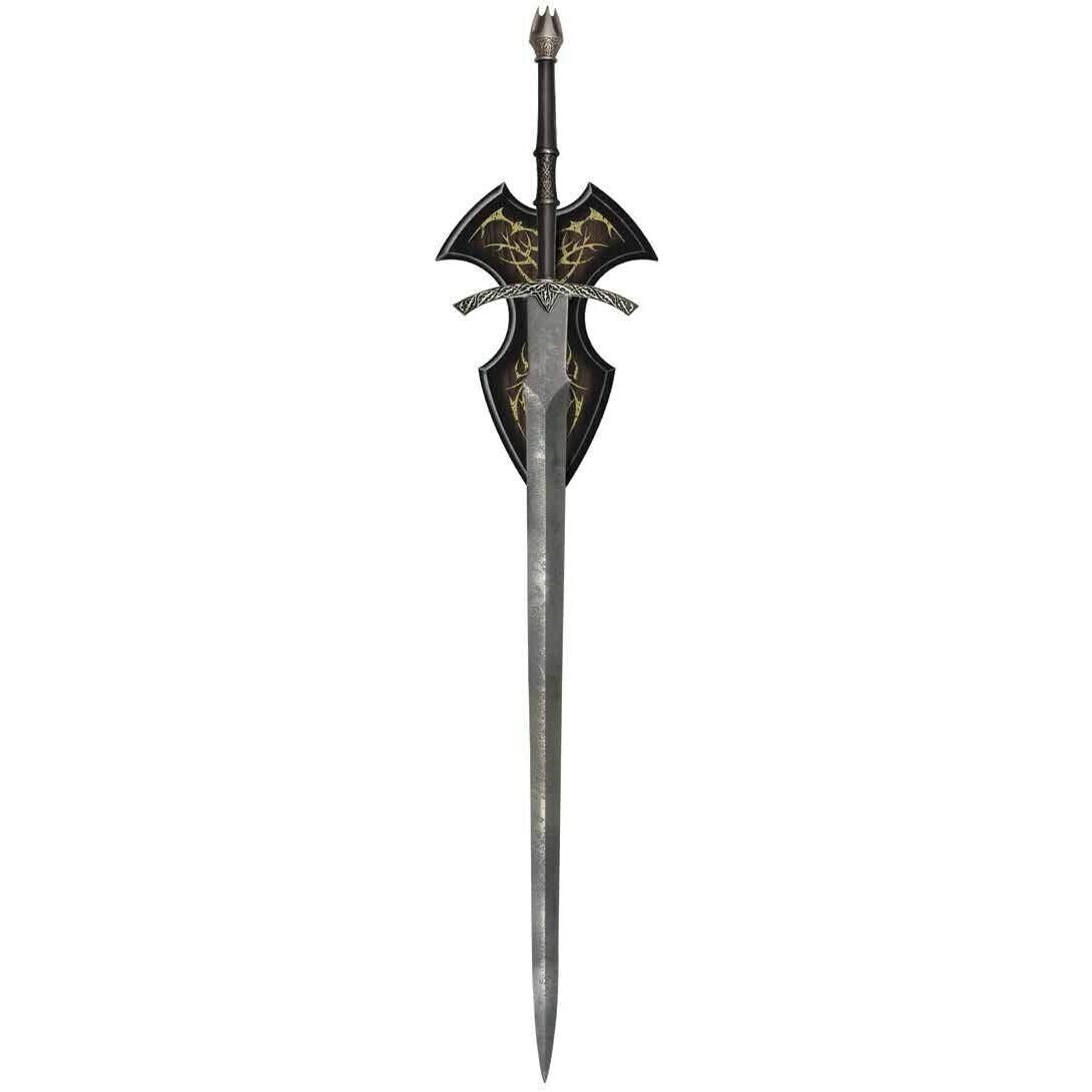 United Cutlery has meticulously reproduced the actual prop swords using only the finest grade materials and craftsmanship of the highest quality. Each sword is presented with a hardwood wall plaque and a certificate of authenticity. The Sword of the Witchking: This evil and ancient sword is wielded by the Witchking, leader of the nine Ringwraiths, the indestructible and relentless shadow servants of Sauron. They were once mortal kings of men that Sauron corrupted with his Ring of Power. Also called Dark Riders or the Nazgul, they can sense when the One Ring is near and can see the Ringbearer clearly when he puts it on. The Witchking´s sword was built by armourers of the dark land of Mordor, under the command of their evil master Sauron.