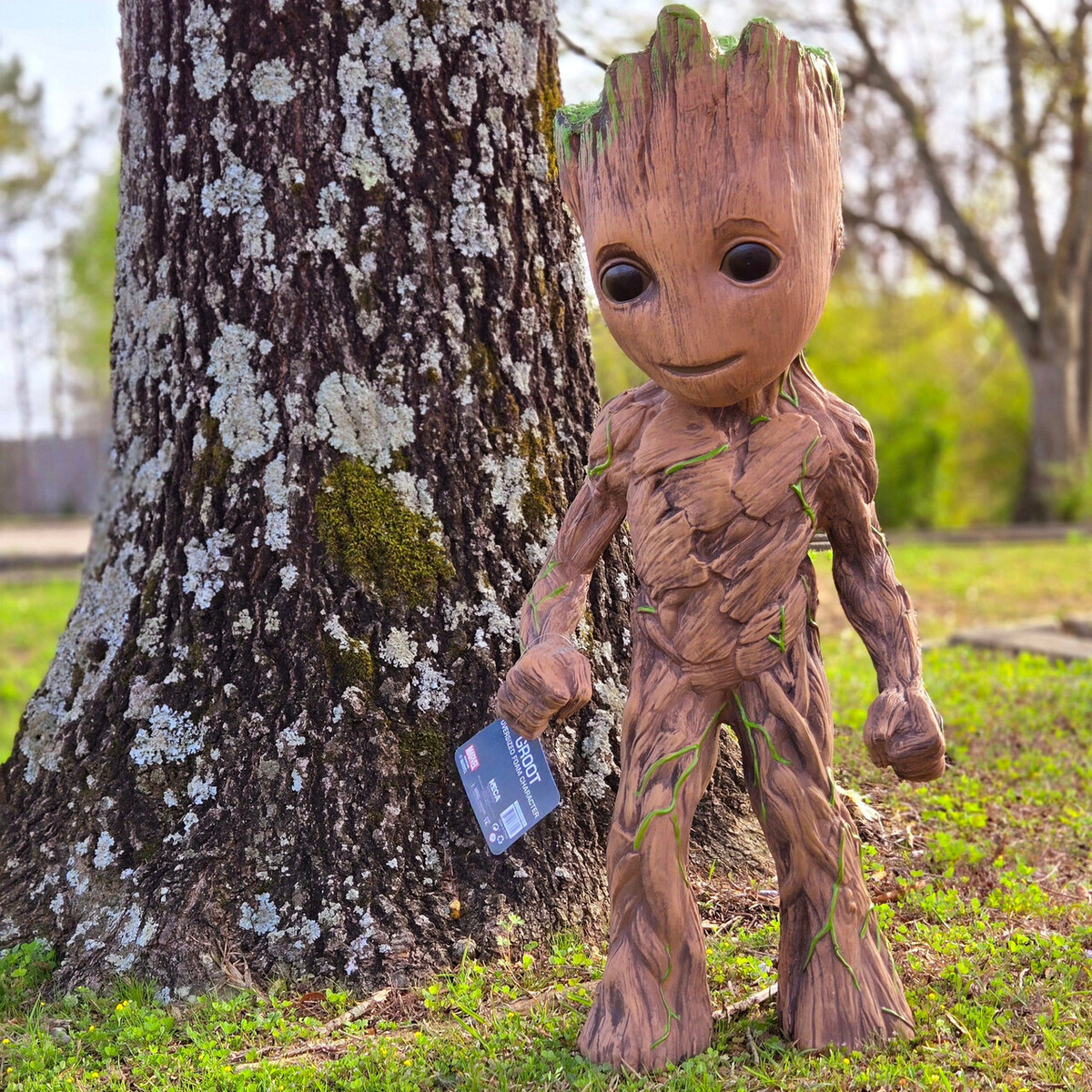 Add some out-of-this-world decoration to home, office or retail environments with this hand-painted Groot replica from Marvel's Infinity Saga! Groot stands 76 cm tall and is made of foam rubber and latex that's carefully detailed to be incredibly lifelike.