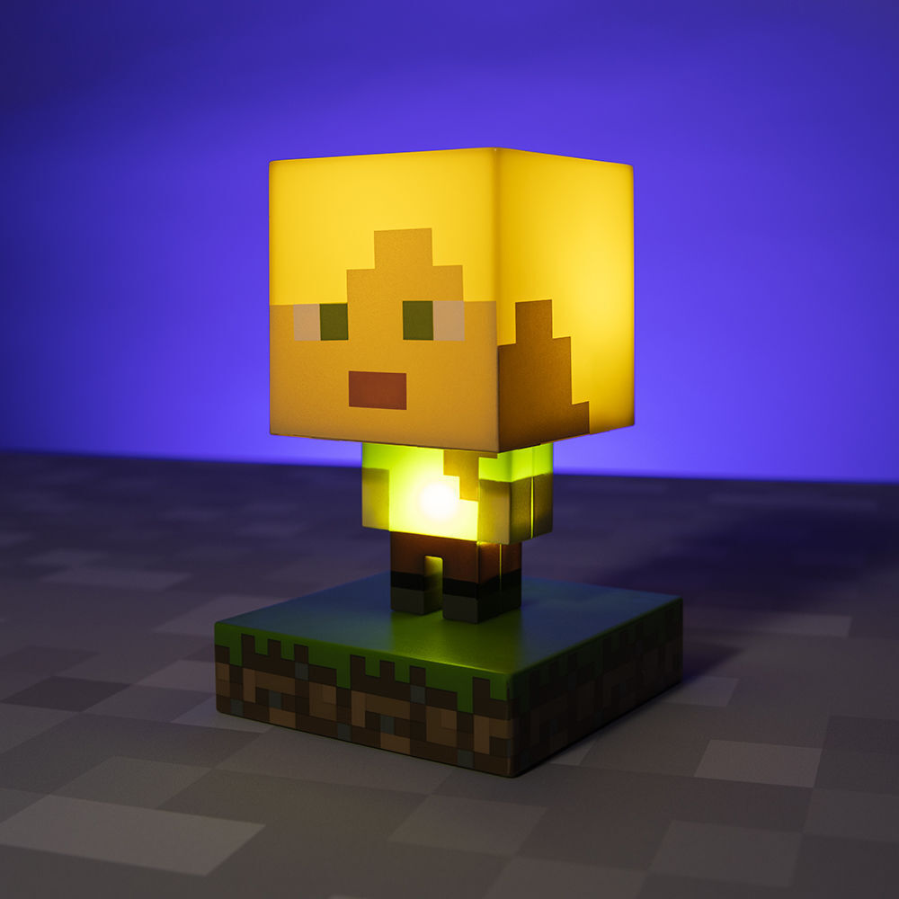 Minecraft Alex Icon Light This light is the perfect present for any fan of the gaming saga! Any collector will want to add this 3D light to their collection.Stands 10 cm (4) tall and is powered by 2x AAA batteries (not included), you can place Icon Light anywhere. Perfect for your bedroom, workspace, or gaming den.Supplied in a full-colour window gift box.