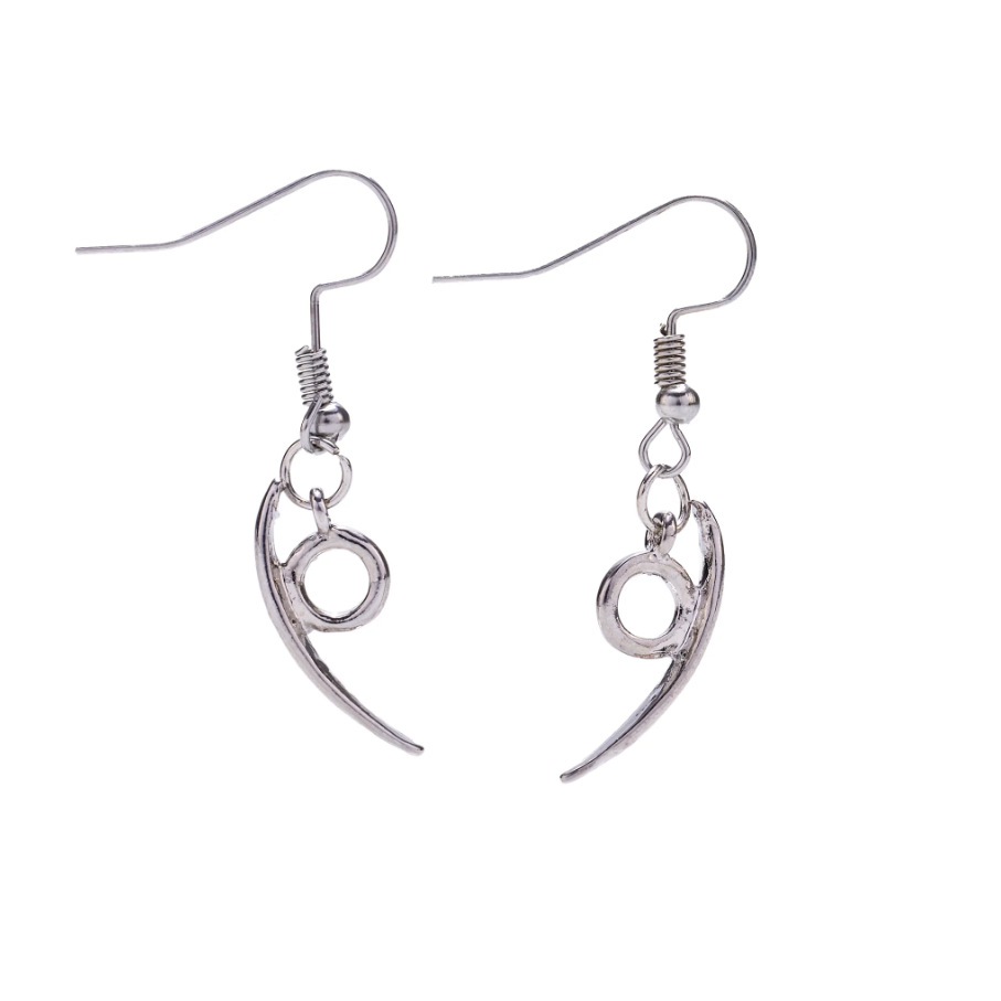 Orochimaru's earrings from the anime series Naruto Shippuden. Metal alloy earrings, measuring 4 x 1.5 cm.