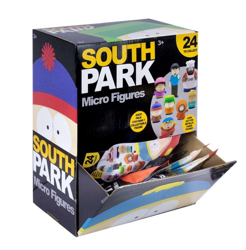 South Park Micro Figures are miniature collectibles featuring beloved characters from the iconic animated series South Park. Each figure comes in a mystery bag - so you won't know which character you get until you open it! Measuring around 1.25 inches tall, these figures include detailed versions of Cartman, Kyle, Stan, Kenny, and Butters. Great for collectors and fans alike, these fun surprises are perfect for displaying or gifting.