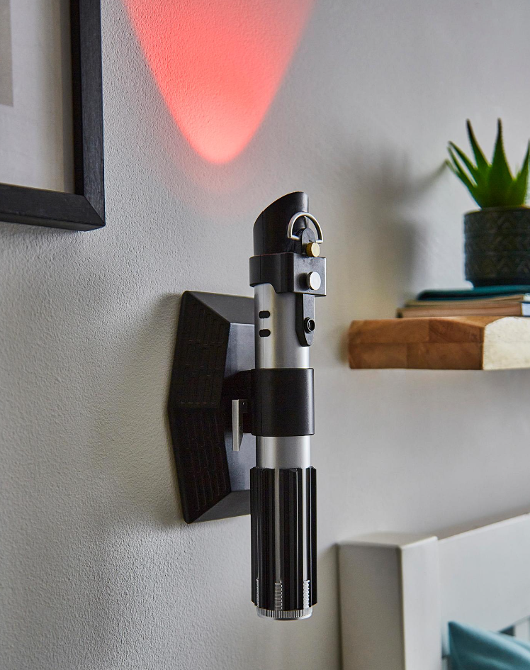 The 25cm (10 inch) tall light is shaped like Darth Vader's lightsaber, and, with a backplate inspired by the menacing Death Star, you can mount it to a wall. Turn it on to release a sith red beam of light. It also plays official sounds when turned on, plus you can set it to night light mode so it turns on when your room is dark.
