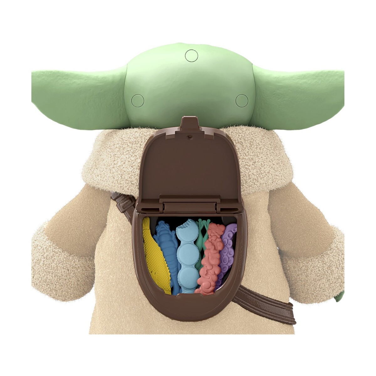 Περιλαμβάνει 6 αξεσουάρ φαγητού που τοποθετούνται στο στόμα της φιγούρας και ενεργοποιούν τη λειτουργία μάσησης, ενώ το παιδί μπορεί να συνεχίσει το παιχνίδι αποθηκεύοντας τα αξεσουάρ στην τσάντα του Grogu.