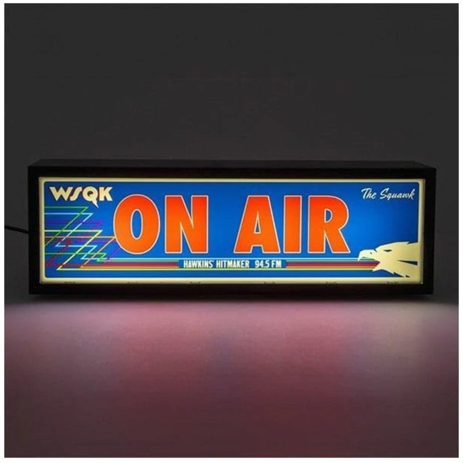 Ready to transmit your inner Hawkins vibe? This Stranger Things 'On Air' lamp isn't just a light; it's a beacon straight from The Squawk 94.5 FM. Perfect for summoning the right atmosphere for your D&D sessions, late-night studies, or simply to show your allegiance to the best radio station in Indiana. Don't be a mouthbreather, tune in!