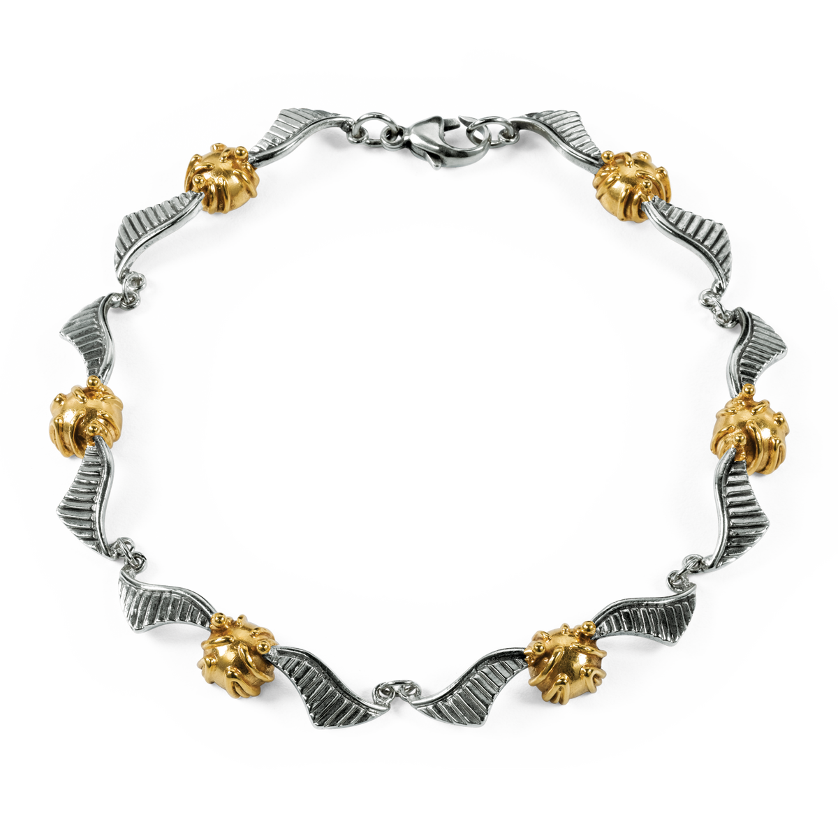 A delicate bracelet made up of Golden Snitches, crafted in sterling silver with selective 24K gold plating.