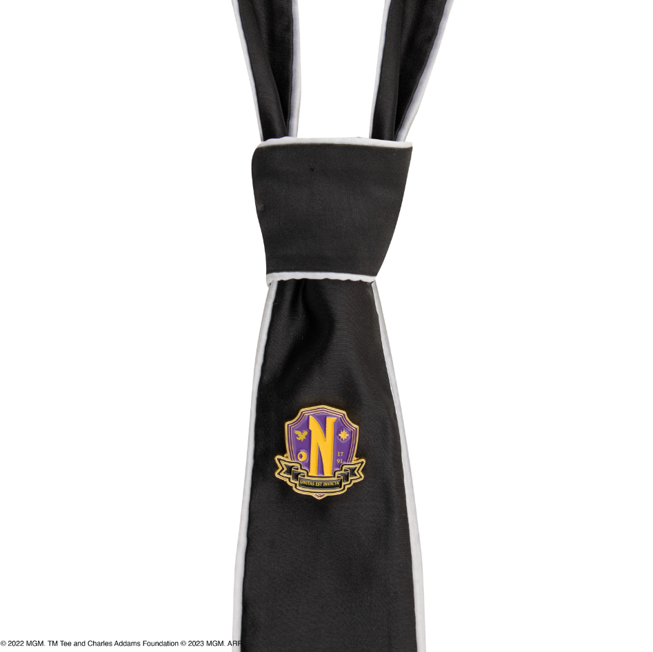 This Nevermore Academy Necktie and pin is a must-have for any fan of the macabre while adding a touch of dark elegance to your outfit.
